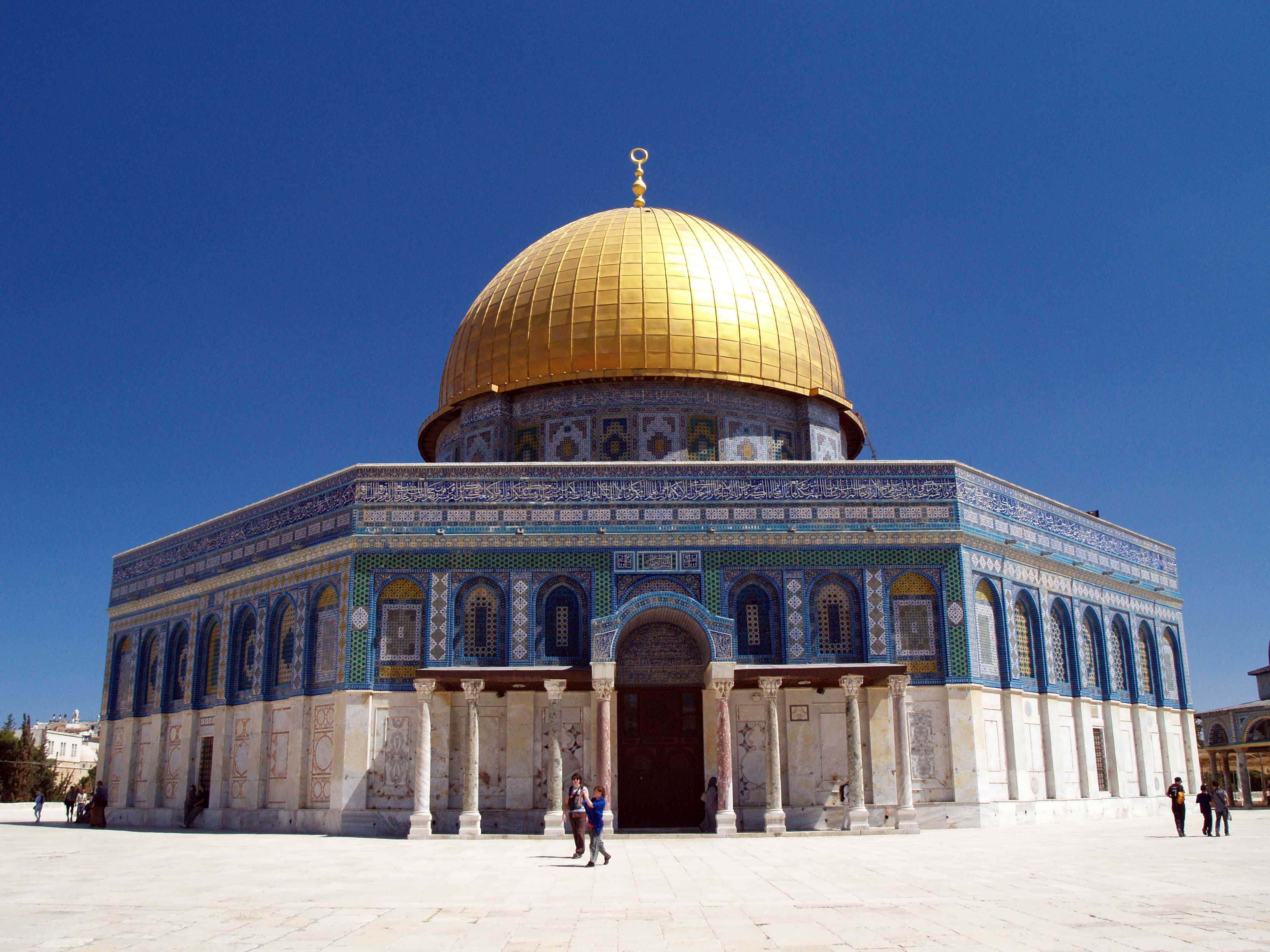 Ayer buscando la entrada a la explanada de las mezquitas acabamos en una de las varias entradas que hay en la muralla que rodea el gran recinto árabe. Unos policías israelitas nos impidieron la entrada y ante mis preguntas no me indicaron las respuestas y no miraron el plano que les enseñaba. Ante su no amabilidad nos retiramos con idea de ir a la oficina de turismo. Resueltas las incógnitas gracias a un guía de turismo latinoamericano que al escuchar nuestro español espontáneamente nos aclaró alguna duda, nos encontramos hoy domingo en una gran fila para acceder a la zona de las mezquitas musulmanas. Paciencia bajo el sol justiciero, pasaporte, arco detector de metales, registro de bolsos y bolsas. Por fin accedemos a Haram esh-Sharif, una amplia extensión de terreno en donde se ubicó el templo de Salomón, y en la que entre muchos otros edificios menores, se encuentran las mezquitas de El-Aqsa y la bellísima Mezquita de la Roca.