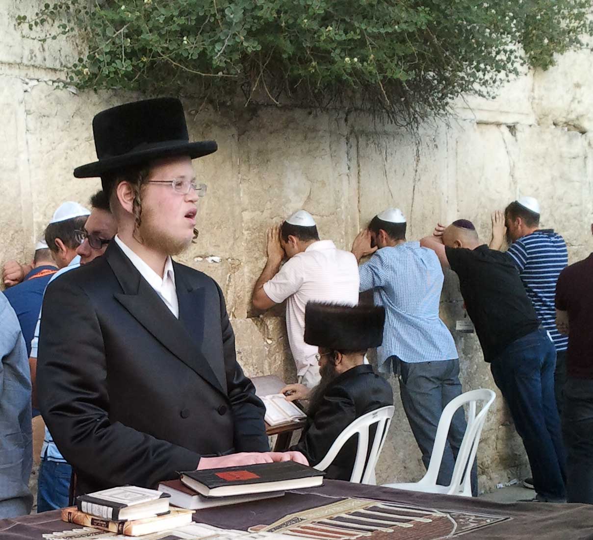 Hoy sabath en el Muro de las Lamentaciones impresiona la gran cantidad de personas que se reúnen allí para orar, cantar, danzar. Hombres a un lado, mujeres a otro. Unos con ropas ortodoxas, otros en camiseta y pantalones cortos, todos con la cabeza cubierta con los sombreros negros de ala ancha, otros con unos curiosos cilindros de terciopelo o peluche encasquetados en sus cabezas o simplemente con la kippah. Con la cabeza cubierta me introduzco entre la multitud. Hay jóvenes y viejos, con sus talit y filacterias rituales leyendo, casi gritando, los versículos mientras hacen movimientos repetidos. Otros apoyan sus cabezas en el muro en un éxtasis místico total. Veo lágrimas resbalando en rostros apoyados en los bloques de piedra. Otros conversan. Otros cantan. Otros bailan. Aparece una gran cantidad de soldados con sus fusiles al hombro que forman un círculo y danzan divertidos. Las grietas del muro están llenas de papelitos en los que hay escritas peticiones. Tanto en el recinto junto al muro como en la gran plaza externa, numerosos vigilantes van a la caza de todo aquel que intenta hacer fotografías “No foto. Sabath, no foto!”.