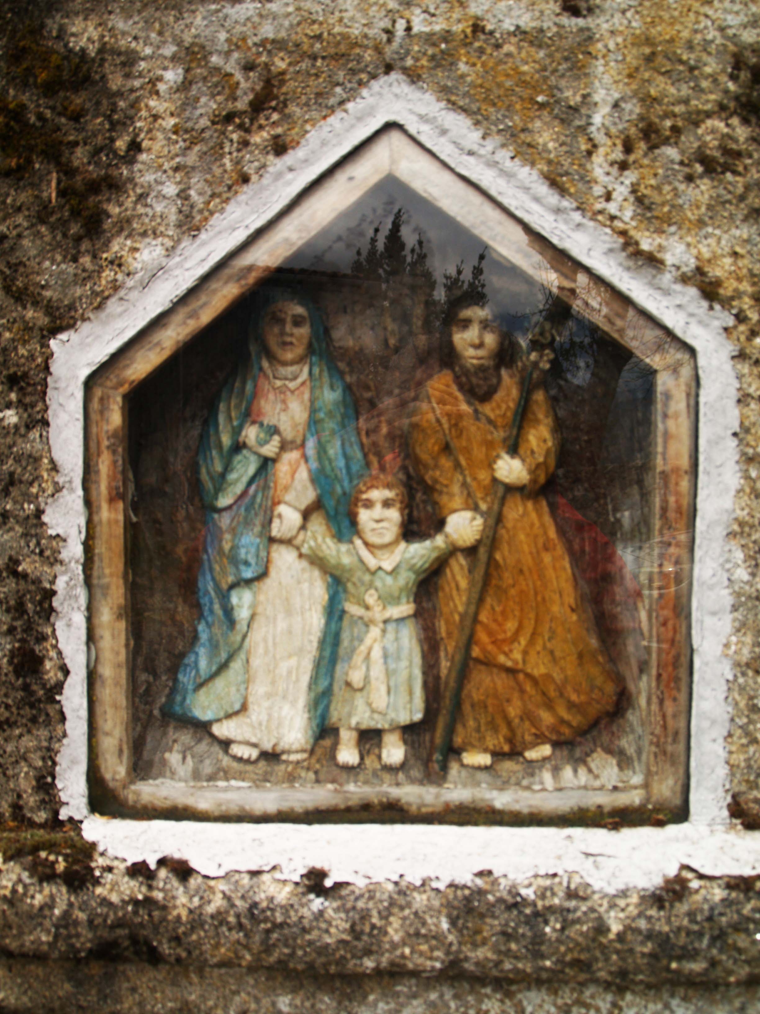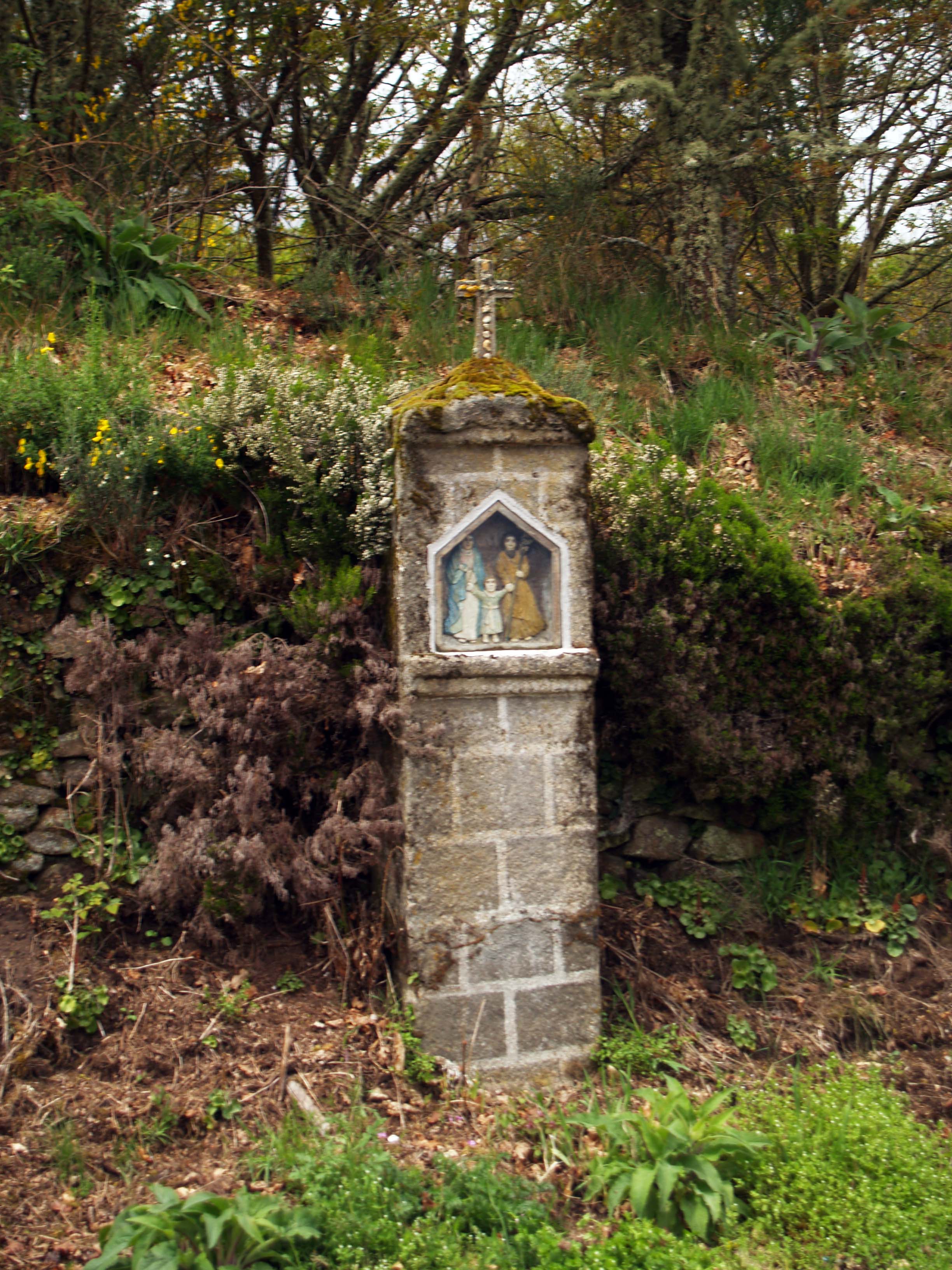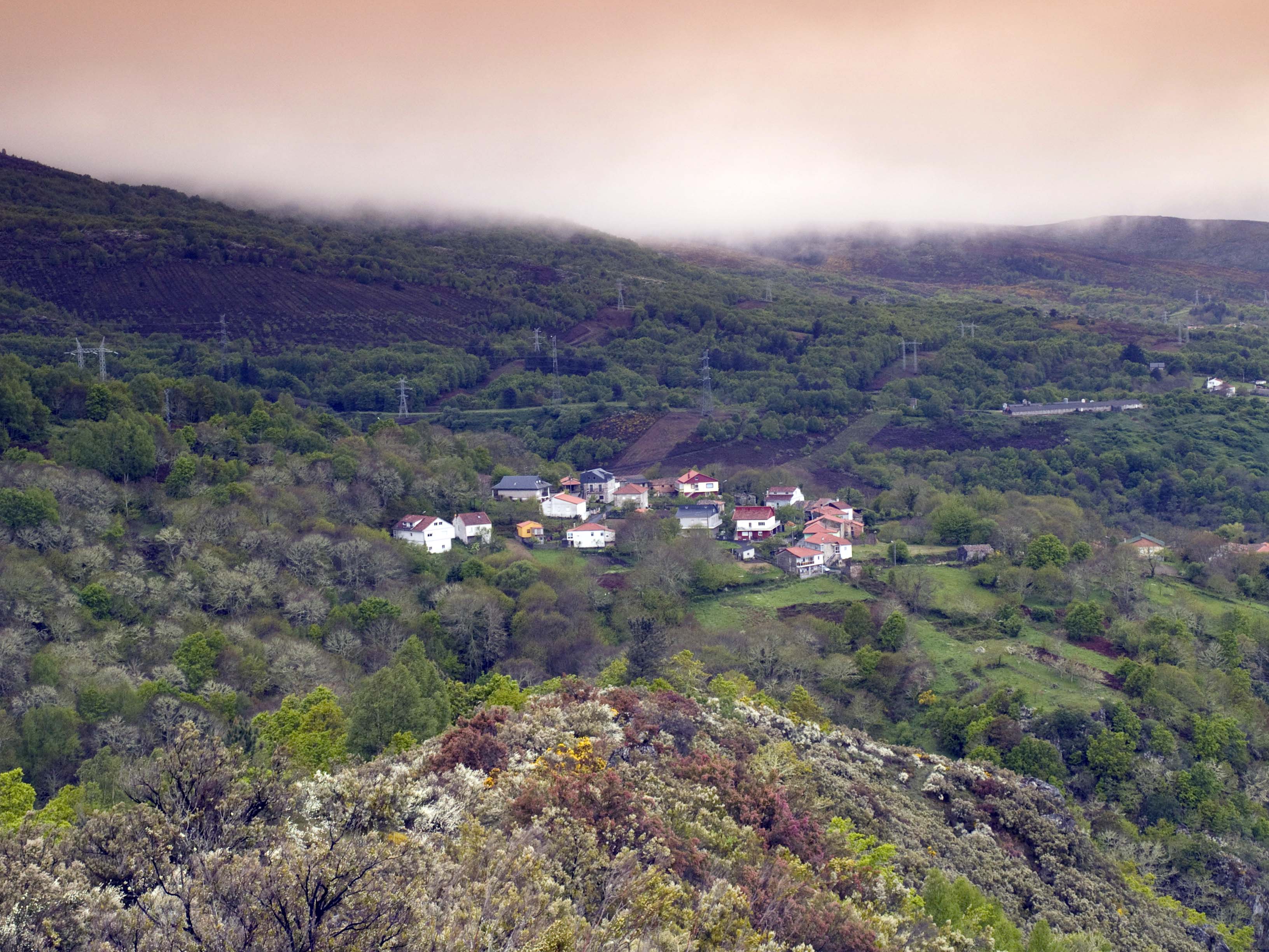 El camino nos lleva por la orilla del río Mao, bajo un techo vegetal de árboles jubilosamente ebrios de clorofila, forrados de musgo, entre matorrales de mil formas, tamaños y nombres desconocidos. Lleva el río un curso embravecido hasta que una presa lo contiene y allí se convierte en un espejo plano en donde los colores de las laderas boscosas se reflejan en un mágico caleidoscopio. La senda asciende lentamente hacia una diminuta aldea, no más de 6 ó 7 casas rodeadas de ruinas de antiguos edificios y pequeños huertos. Un gato y una mujer –quién será gato y quién mujer?- nos observan con precaución. La mujer está en la puerta de una casa. No se ve a nadie más.