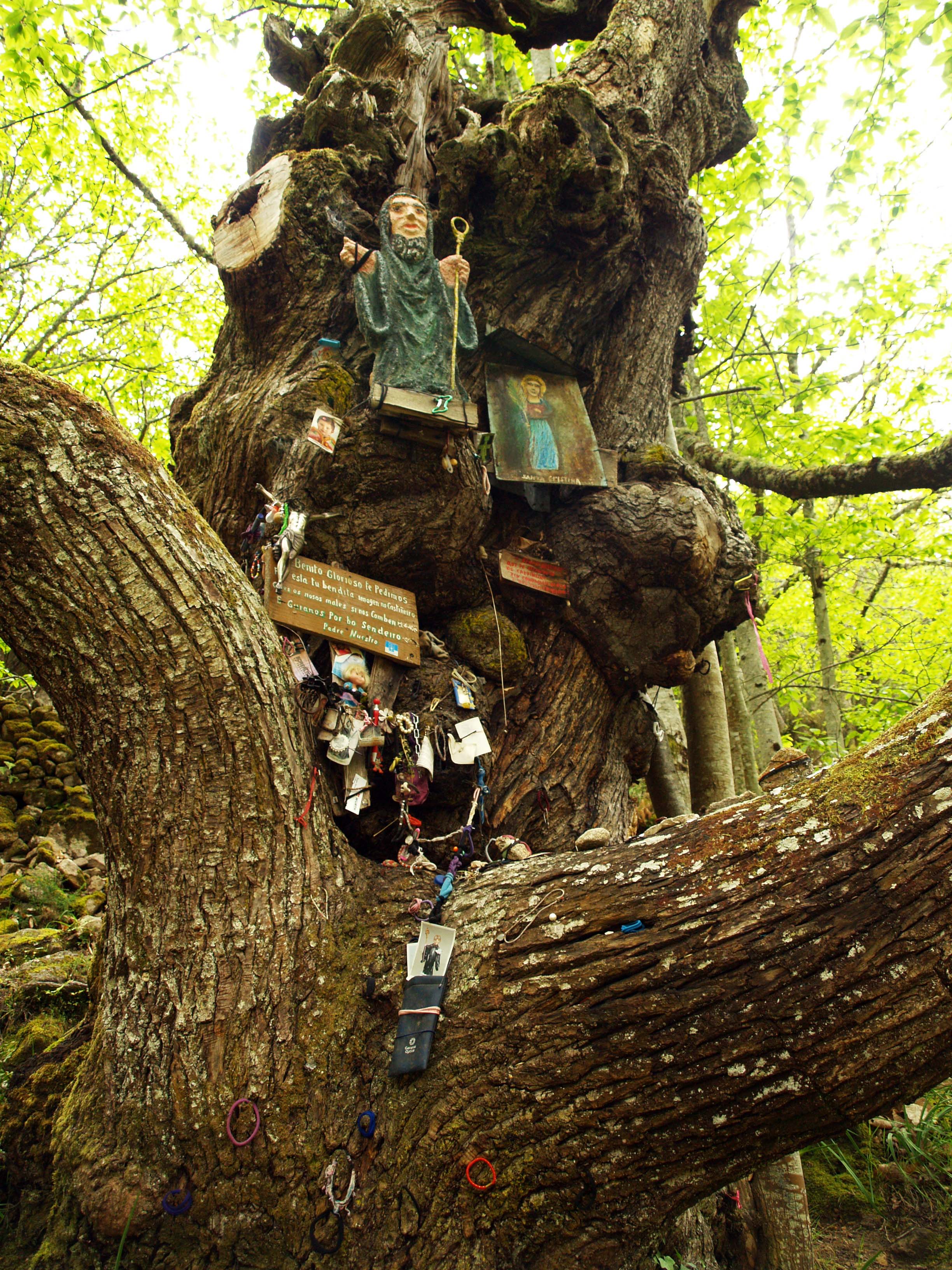 En el bosque denso, esperamos impacientes el asalto de Fendetestas que no aparece, sigue enredado en su cháchara con Fiz de Cotobelo. Nos acompañan nuestros propios espíritus, nuestra herencia ancestral que nos rodea como un aura invisible entre la magia del Orense boscoso. Estamos en la frontera; a un lado la vida, al otro el más allá y unas manos como tentáculos transparentes de pulpos abisales nos señalan caminos diferentes. Hay que elegir, hoy que todavía podemos. Antes de que la noche nos atrape buscamos impacientes un peto das ánimas y dejamos unas monedas.