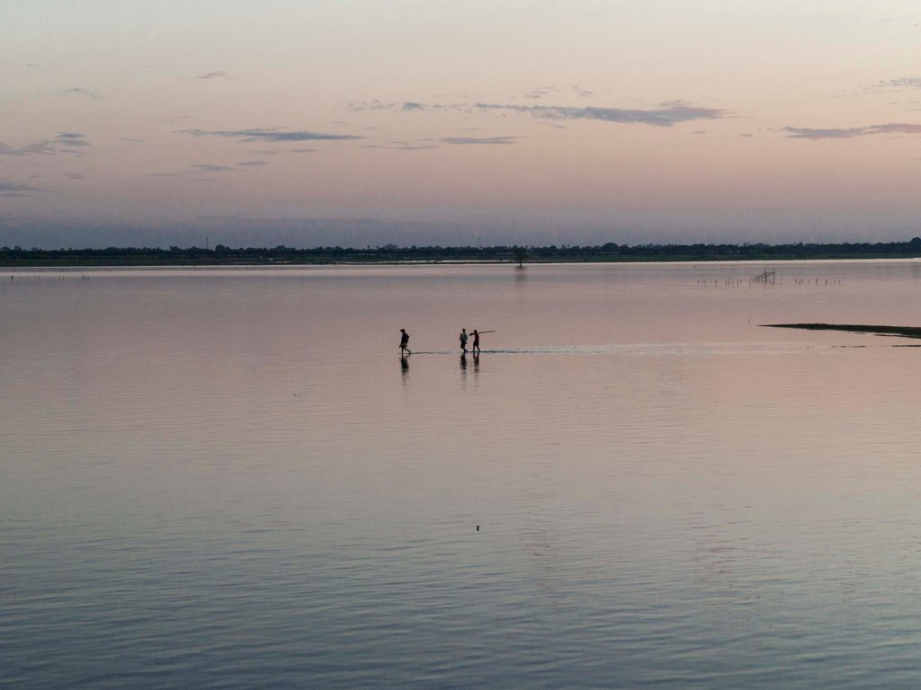 CAMINANDO SOBRE LAS AGUAS DEL LAGO TAUNGTHAMAN (FOTO JPB)