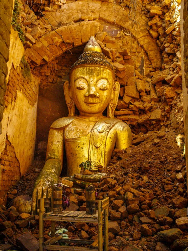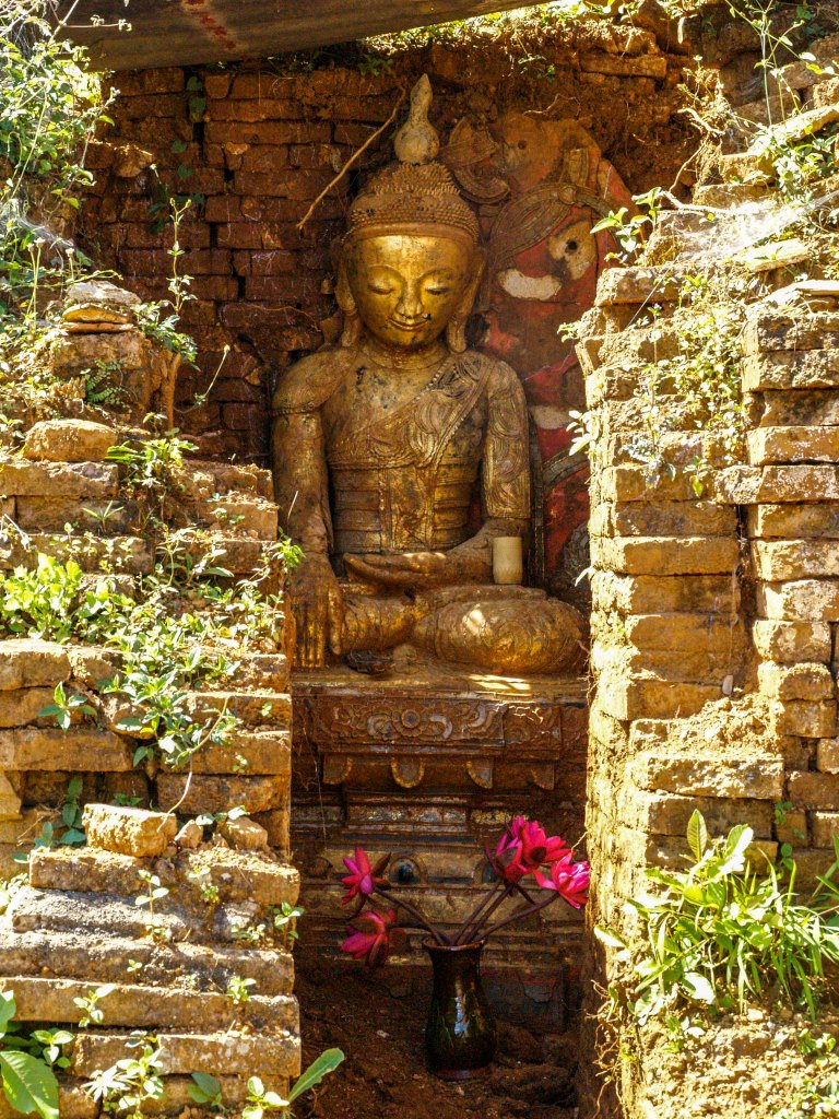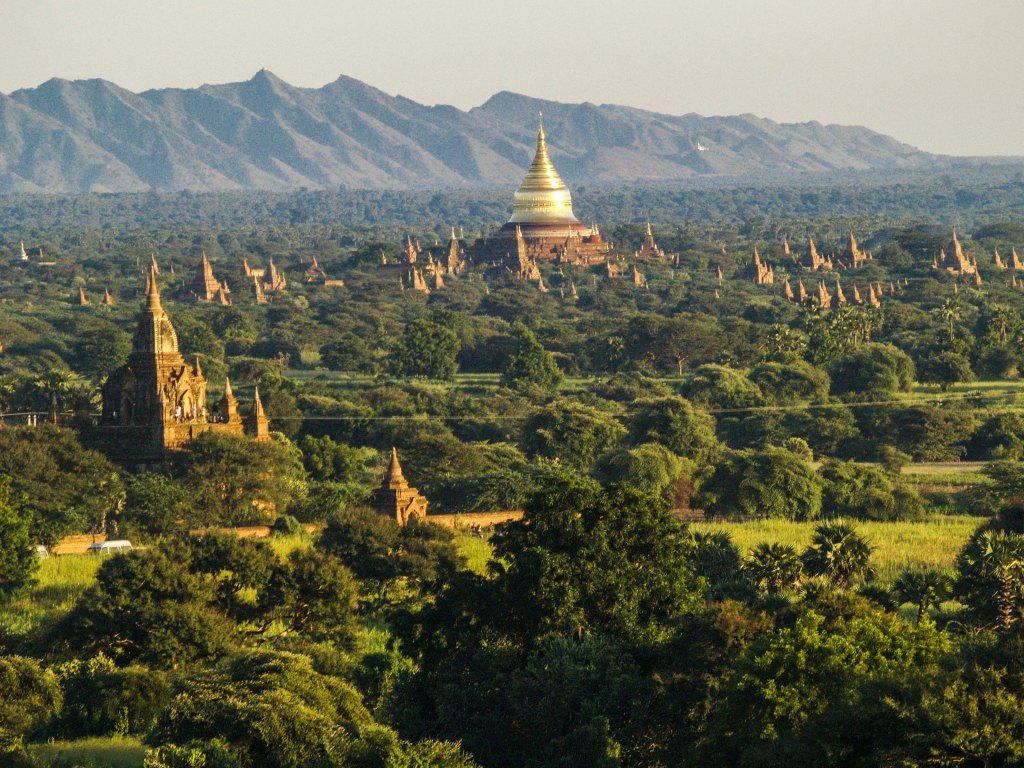 Desde lo alto del templo budista, Shewessandaw Paya en Bagan, compruebo que es cierta la frase de Marco Polo; esto que yo contemplo, lo que el veneciano contemplaba, es «uno de los espectáculos más bellos del mundo». Una extensa llanura en la que centenares de templos sobresalen entre la vegetación. Los reyes de Bagan encargaron la construcción de 4000. El tiempo, las guerras, la ruina, hicieron su labor y lo que vemos son los residuos de esta formidable y mágica historia. Grandes, pequeños, dispersos en toda la gran extensión de la llanura, como si hubieran nacido y crecido tras una densa lluvia. Un espectáculo para disfrutar en silencio mientras el sol va escondiéndose en el horizonte llenando todo, hasta el viento, de tonos dorados. Para aplaudir cuando concluye, como decía Juan Goytisolo.