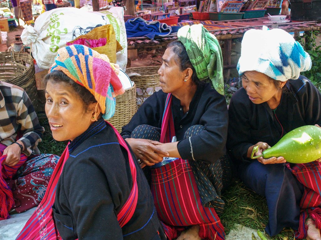 En los mercados rurales se ven grupos de personas con una similar manera en su vestuario que, a su vez, es diferente al de otros. Una de las características, también uno de los problemas, de Birmania es la existencia de numerosas etnias, cada una con sus costumbres peculiares, sus zonas de asentamiento, sus idiomas. El gobierno birmano reconoce oficialmente 135 etnias que se agrupan en 8 principales: bamar, san, mon, karen, kayah, chin, kachin y rahkine. Cada una con sus usos y costumbres, con sus dialectos peculiares, con una convivencia difícil, a veces conflictiva, entre sí. Sus áreas territoriales suelen estar en zonas fronterizas, algunas cercanas a los países de los que provienen; un espíritu independentista y el uso de armas para defender sus territorios han marcado épocas de serios conflictos.