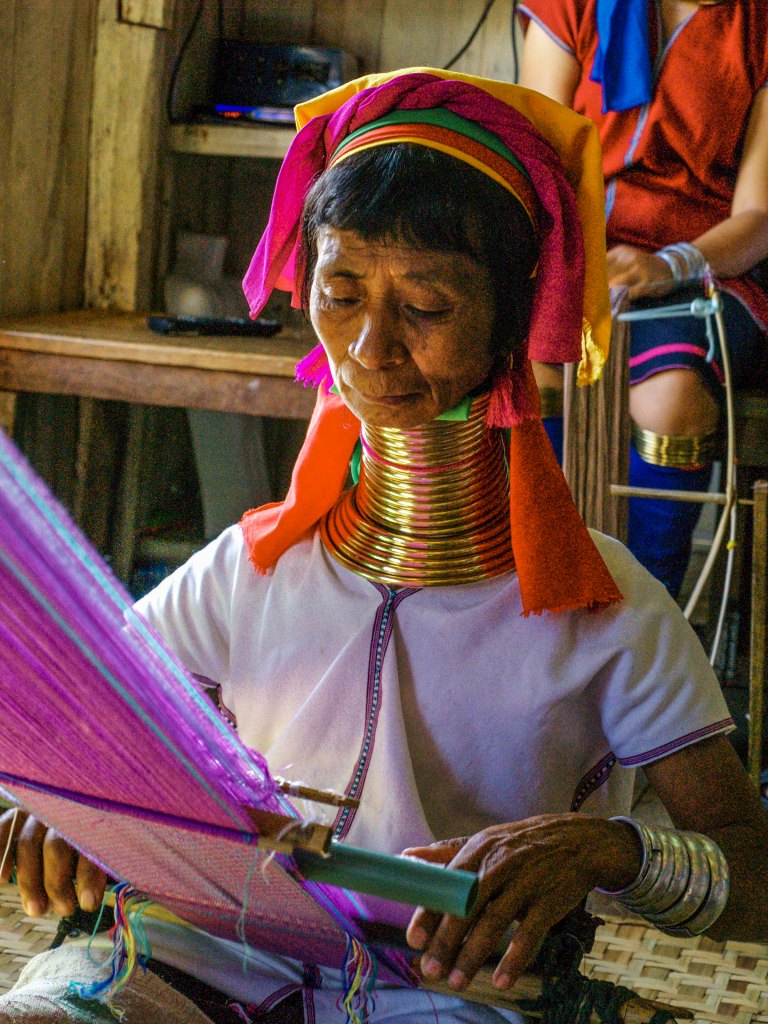 En la etnia Kayan existe la costumbre de colocar anillos metálicos en el cuello de las mujeres cuando cumplen los 5 años. Progresivamente se van colocando más anillos hasta que alcanzan la edad del final del desarrollo físico, sobre los 12 o 13 años. Son las denominadas «mujeres jirafa». Existen varias teorías que intentan explicar el origen de este comportamiento pero no se sabe con exactitud el porqué de esta costumbre. Sí que hay un debate abierto sobre la actitud ética de los viajeros que van a los lugares en los que se exhiben para la vender sus productos artesanales, ser fotografiadas y recibir alguna cantidad de dinero. La etnia Kayan proviene de Gobi, Mongolia, y se asentó en Birmania. En la Revolución del Azafrán muchos miembros Kayan huyeron a Tailandia.