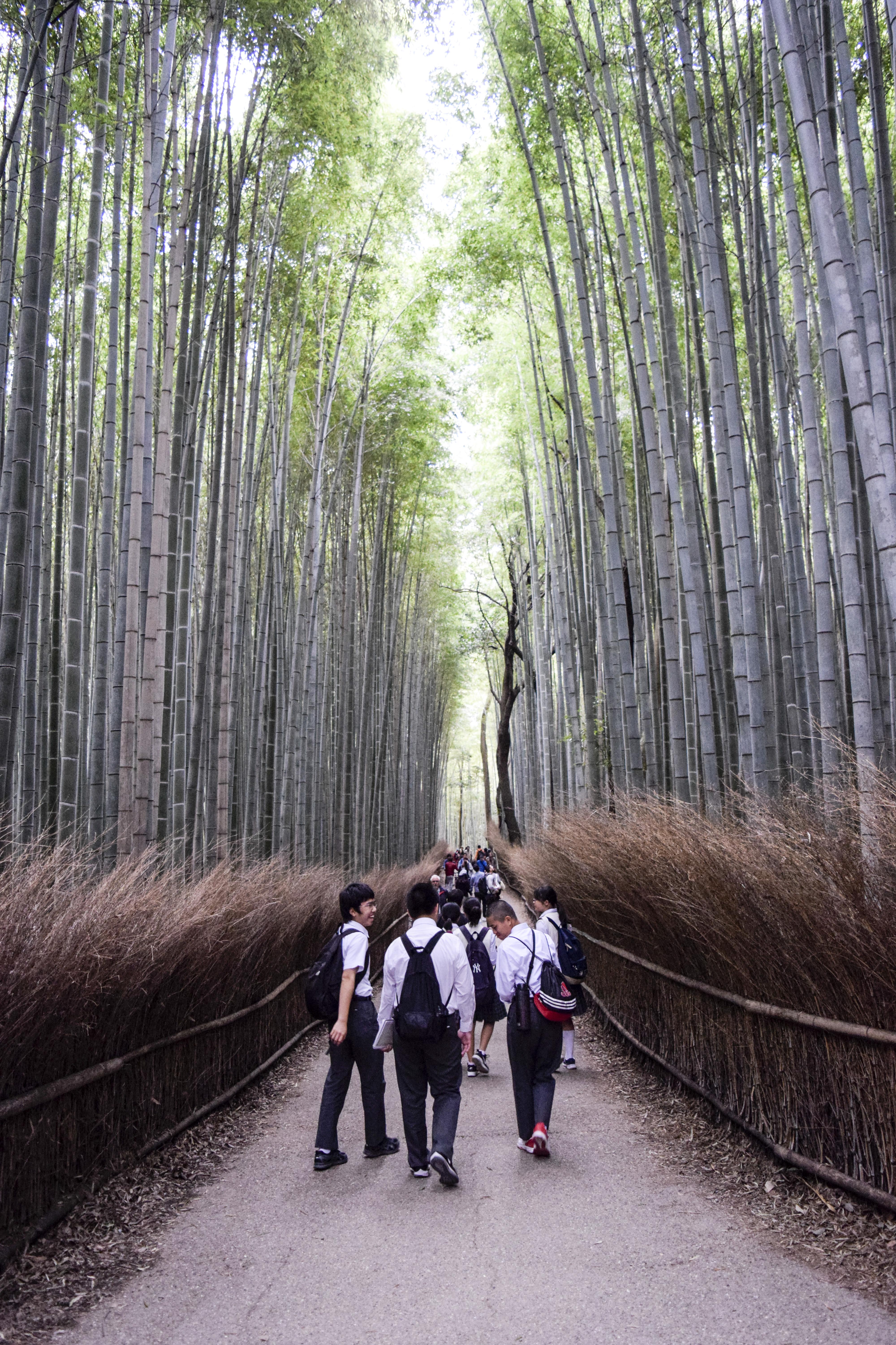 Cientos, miles de troncos de bambú, chocando entre sí, agitados por el viento, producen una canción de sonidos huecos. Arriba, muy arriba, los penachos verdes, las hojas encumbradas a más de veinte metros de altura, ponen otras notas musicales a la sinfonía. El sonido es tan especial que figura entre los «cien sonidos a preservar en Japón» Es el sonido del bosque de bambú de Sagano, en Arashiyama, muy cerca de Kyoto.