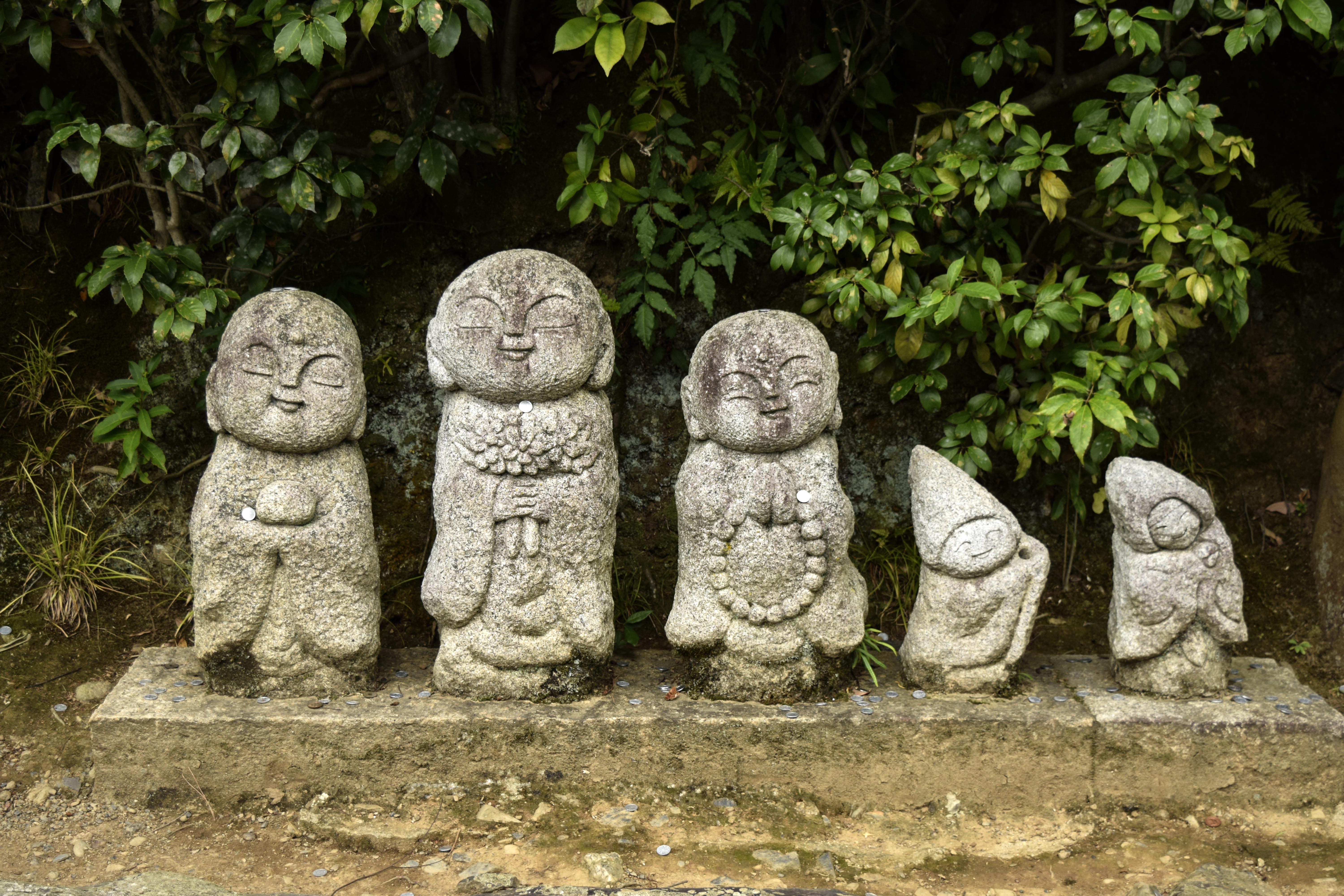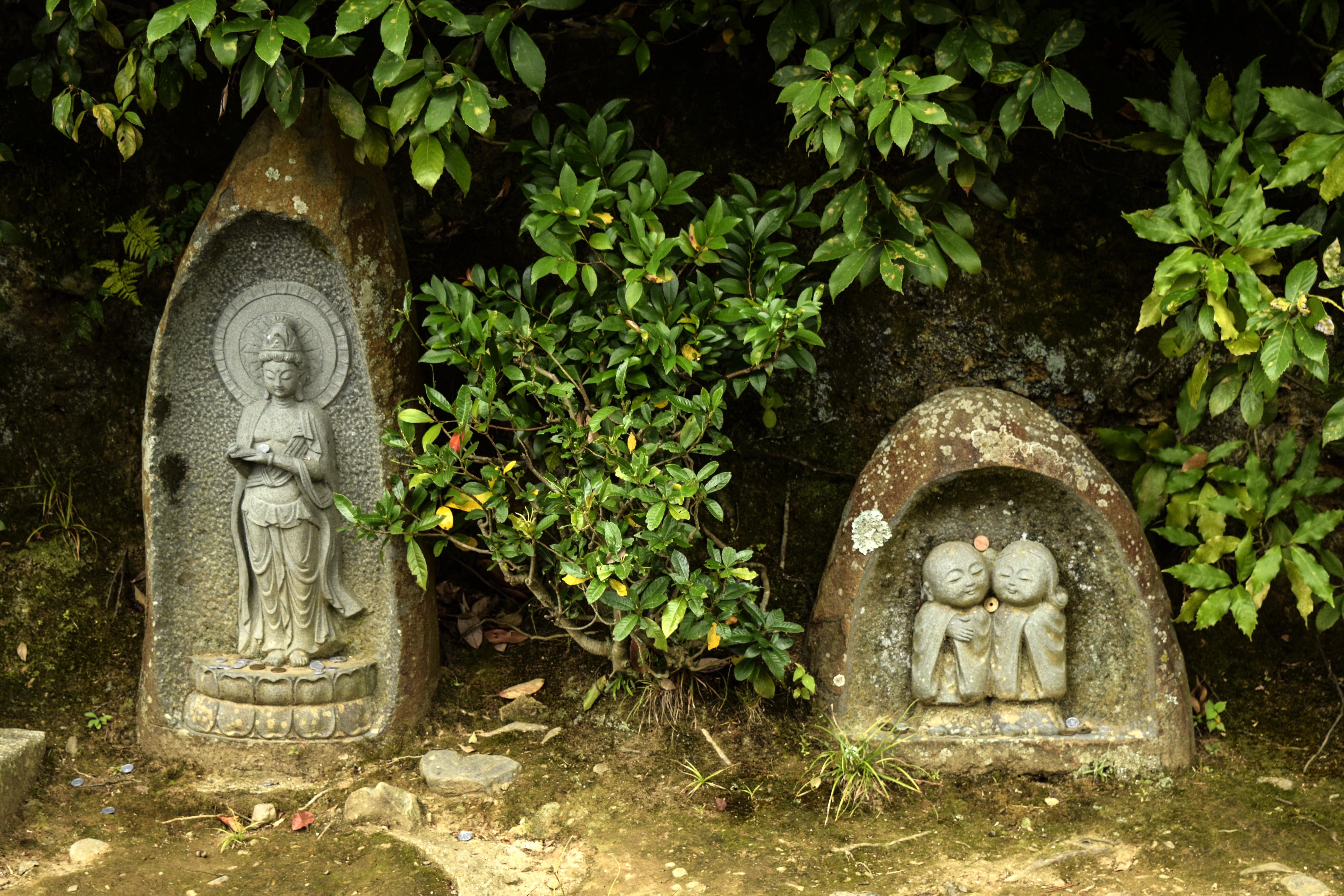 Es un mundo especial, una isla apartada del entorno próximo por el que circula la vida convencional. Un lugar en el que apartarse, recluirse y deambular sin tiempo y sin prisa. Los rostros amables de sonrisa congelada en piedra de las deidades protectoras cuidan el camino y al caminante.