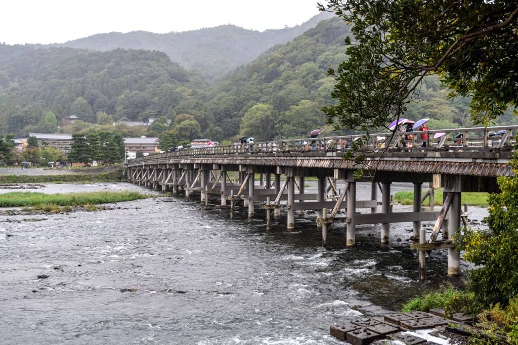 Un poco más allá el puente Togetsukyo atraviesa en río Katsura rodeado de pequeñas colinas de un verde intenso llenas de belleza.