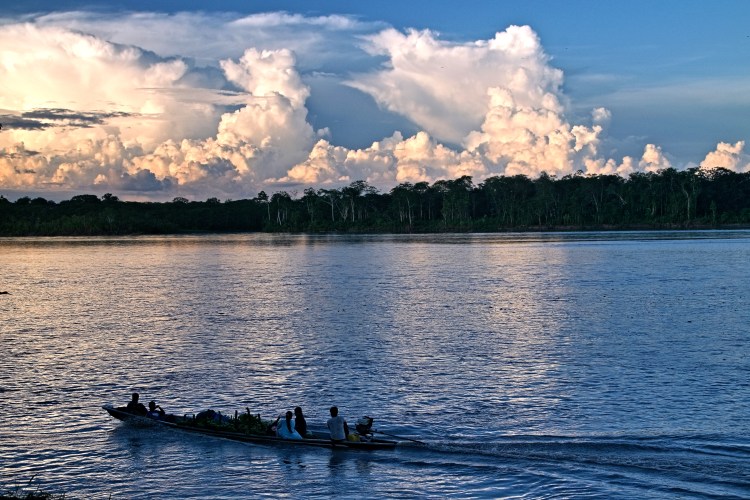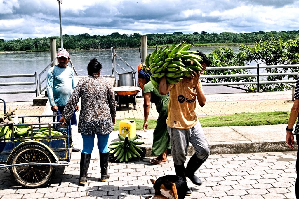 Por las tardes las nubes crecen y crecen, se convierten en masas inmensas sobre el techo vegetal de la selva, coloreadas por la luz amarillenta de un ocaso rápido y alguna lancha navega por el cauce del Napo. La selva, las nubes, el río, las lanchas…una hermosa pintura colorida, fugaz. Es difícil separarse entonces del malecón al contemplar tanta belleza.